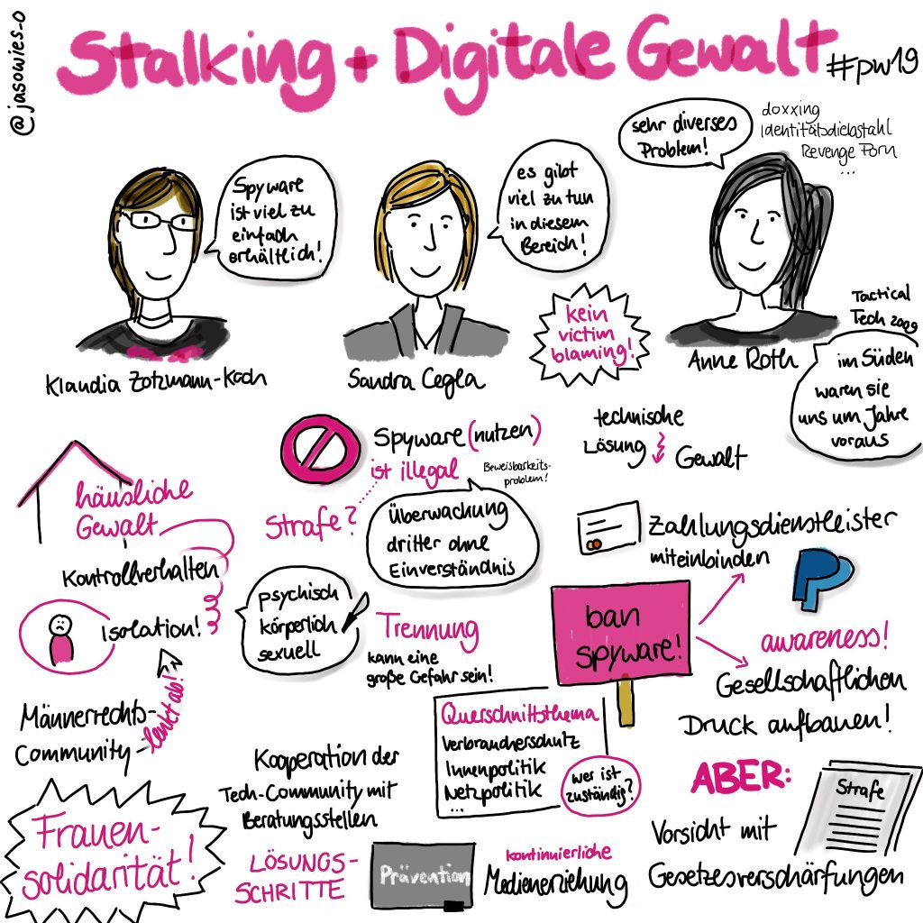 Stalking und Digitale Gewalt: Ignorieren ist keine Option. Diskussionsrunde bei der PrivacyWeek 2019 mit Sandra Cegla und Anne Roth, moderiert von Klaudia Zotzmann-Koch.